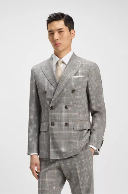Checked slim-fit jacket in linen and virgin wool