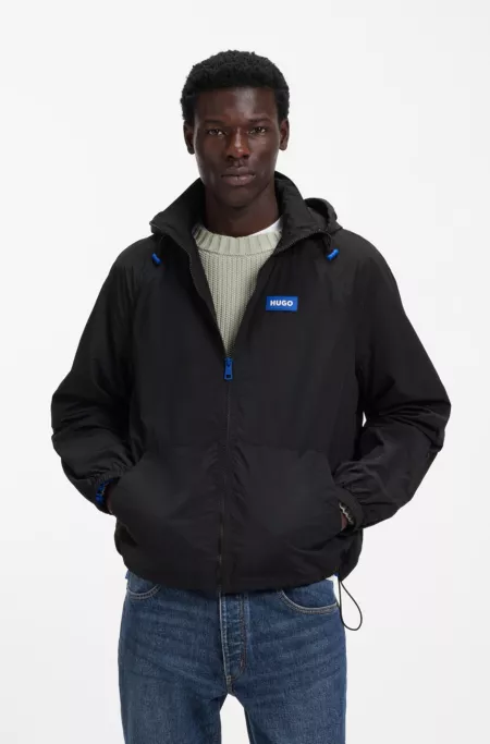 Versatile and protective in all conditions, this HUGO Menswear jacket offers water repellency and a zip-off hood. Regular fit Logo-patch trim. Adjustable hem.
