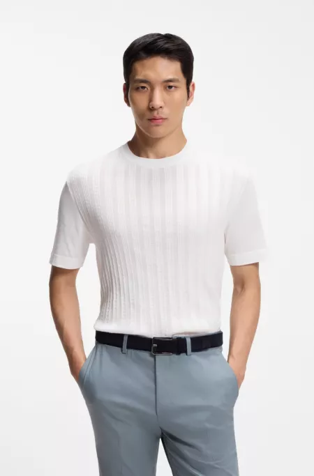 Slim-fit short-sleeved T-shirt in mercerised cotton
