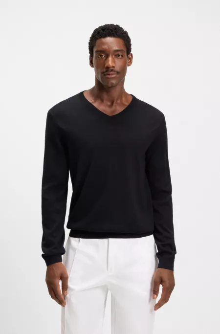 Virgin-wool sweater with V neckline