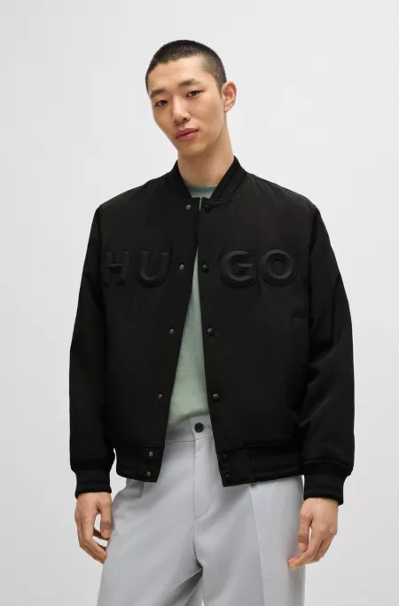 Water-repellent bomber jacket with rubberized logo