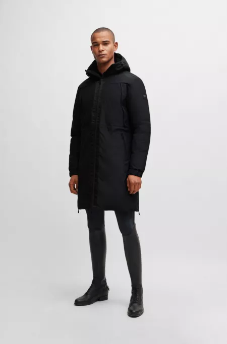 Filled with certified duck down and feather, this water-repellent BOSS Menswear parka is a must on chilly days. Windshield and binding on hood.