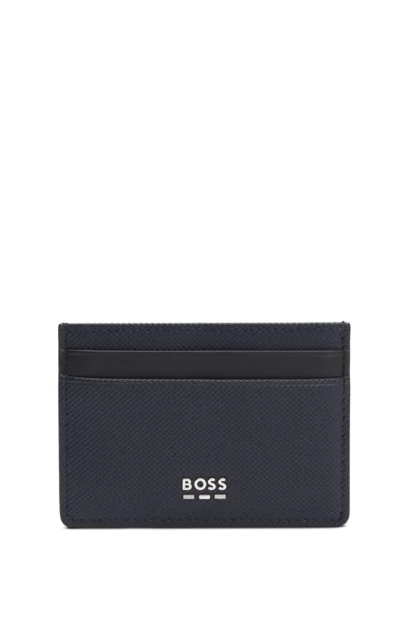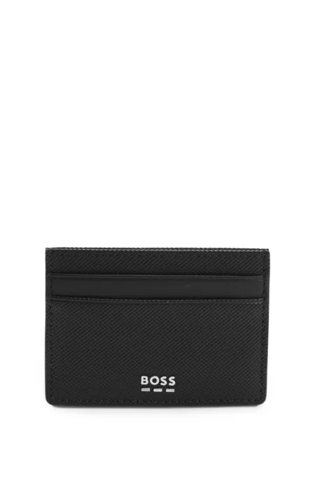 Trimmed with polished logo lettering, this BOSS Menswear card holder mixes plain and grained leathers for textural interest. Mesh ID window. Measurements: 7. 5 x 11cms.