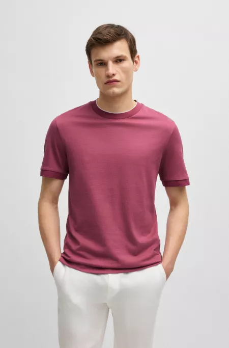 Cotton-silk T-shirt with stripe structure