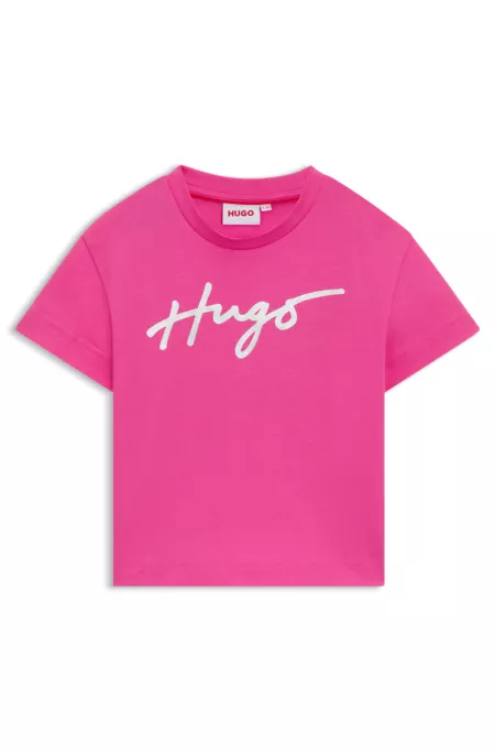 Cotton-jersey T-shirt with Happy HUGO logo