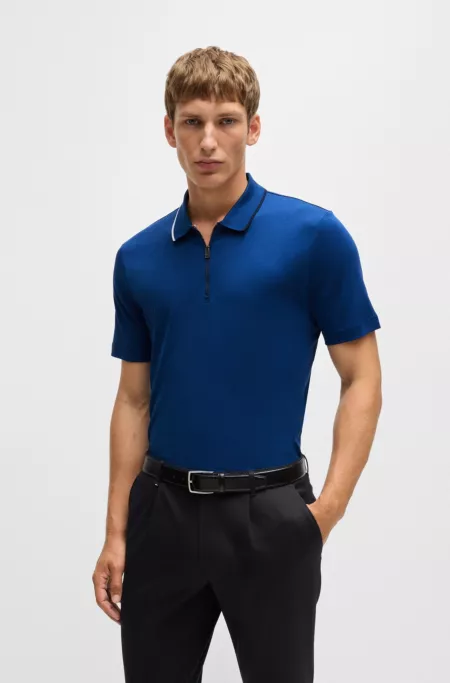 Cotton-silk polo shirt with zip neck