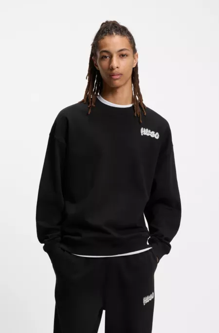 Cotton-terry sweatshirt with stacked smoke logo prints