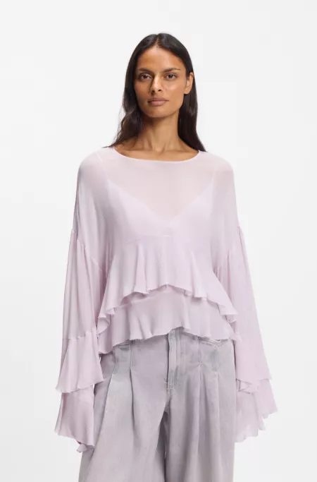 Crafted in fluid seersucker with a lightweight feel, this BOSS Womenswear blouse features romantic ruffles for modern movement. Strappy slip top included.