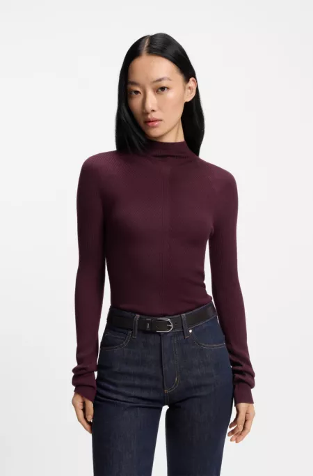 With a sleek silhouette in temperature-regulating merino wool, this BOSS Womenswear sweater is perfect for layering. Knitted with mixed ribbing.