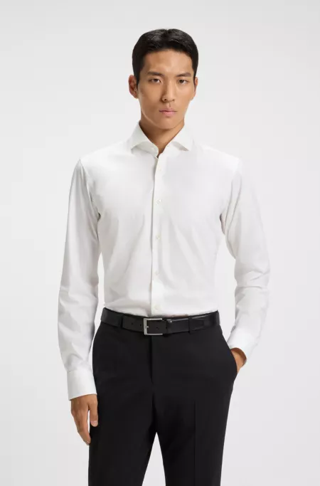 Easy-iron slim-fit shirt in stretch-cotton twill
