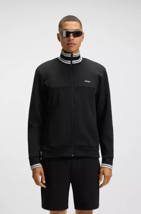 Stripe-detail zip-up sweatshirt in a cotton blend