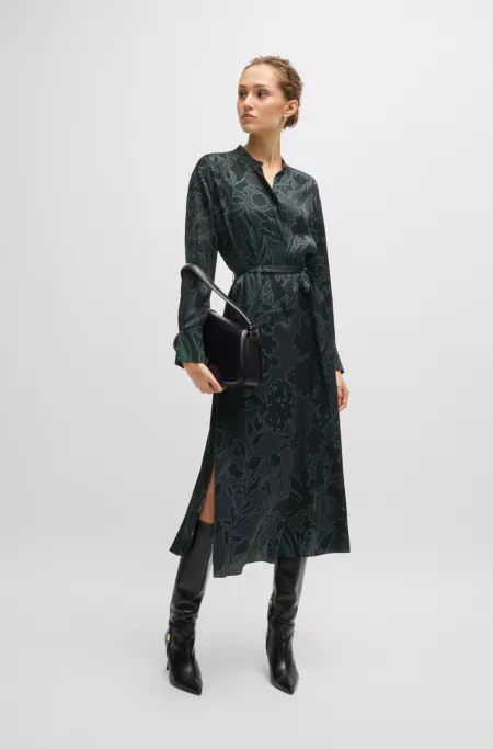 Floral-print dress with removable belt in silk blend