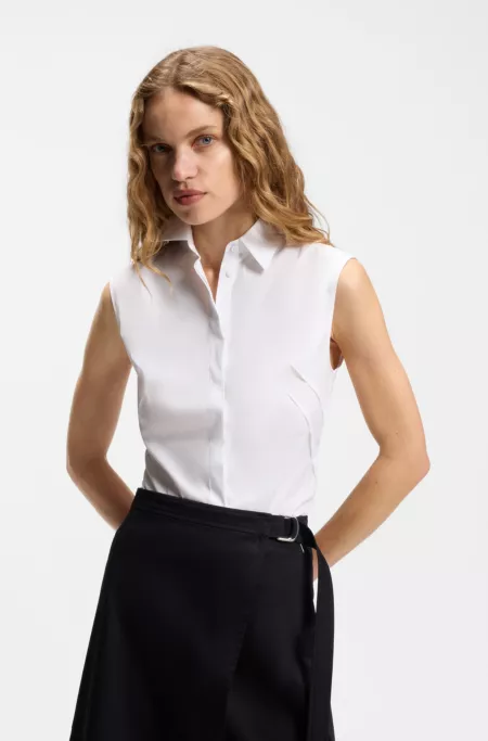 Sleeveless slim-fit blouse in a cotton blend