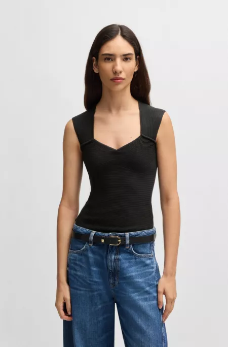 Sleeveless top in stretch fabric with mixed ribbing