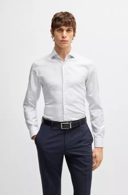 Slim-fit shirt in Italian-made structured cotton
