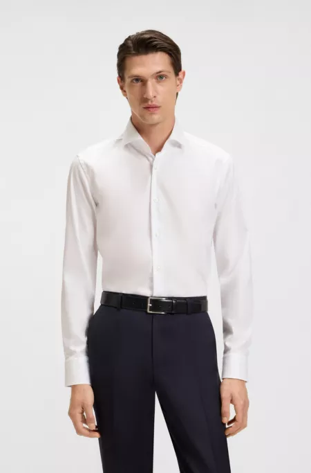 Slim-fit shirt in structured wrinkle-free cotton
