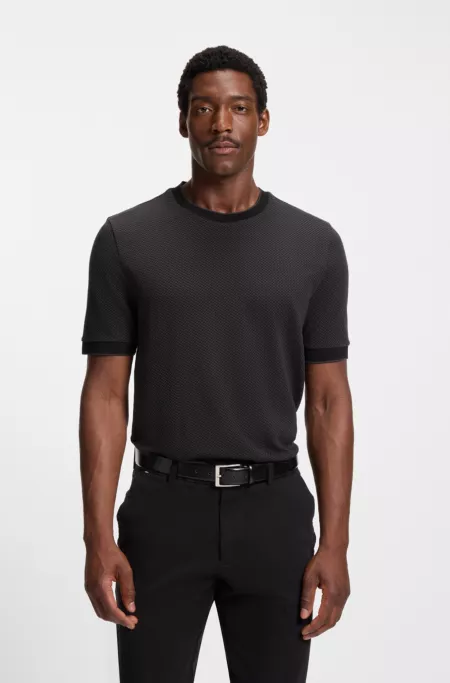 Regular-fit T-shirt in two-tone cotton and cashmere