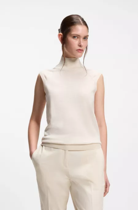 Sleeveless top in merino wool with mock neck