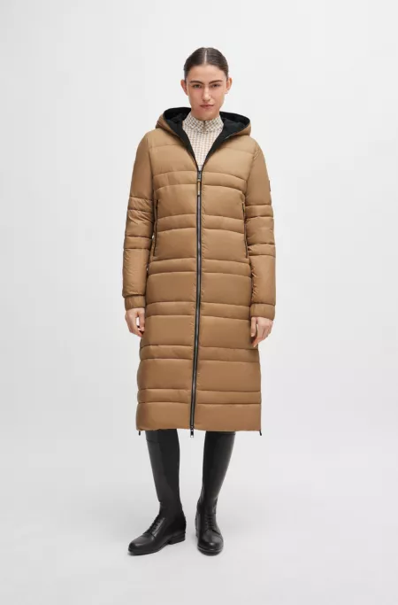 Equestrian long puffer jacket with side zips