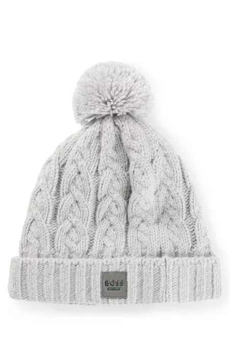 A cozy beanie hat by BOSS Menswear. Topped with a bobble, this beanie hat has a cable-knit structure and a BOSS logo badge on the hem. The interior features fleece for extra warmth.