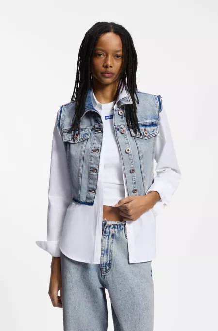 With frayed edges, this sleeveless, trucker-style vest from HUGO Womenswear has a cropped, flattering fit. Crafted in azure-blue weighty denim.
