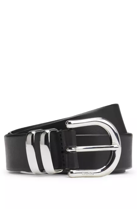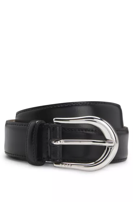 Rounded-buckle belt in Italian leather