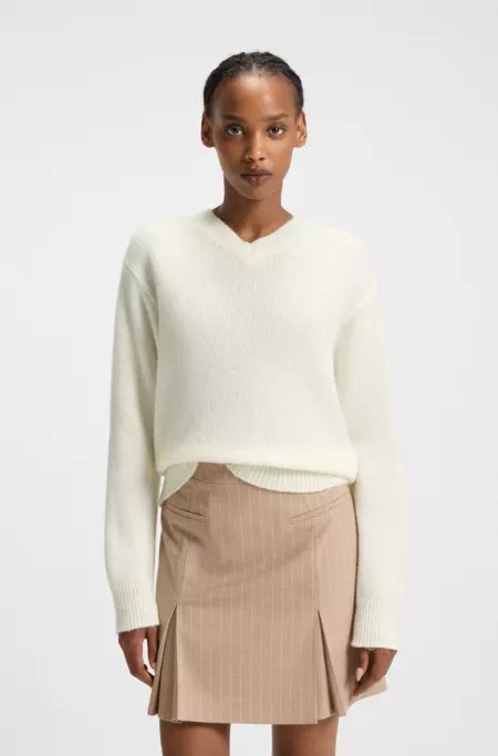 Wool-blend relaxed-ft sweater with V neckline