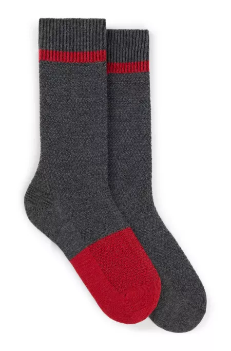 Two pairs of signature boot socks by HUGO. Blended with wool and stretch, each structured pair has branding and contrast details.