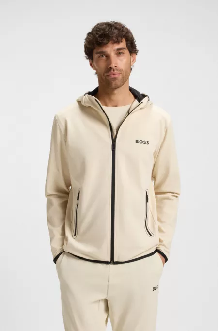 Active-stretch zip-up hoodie with logo detail